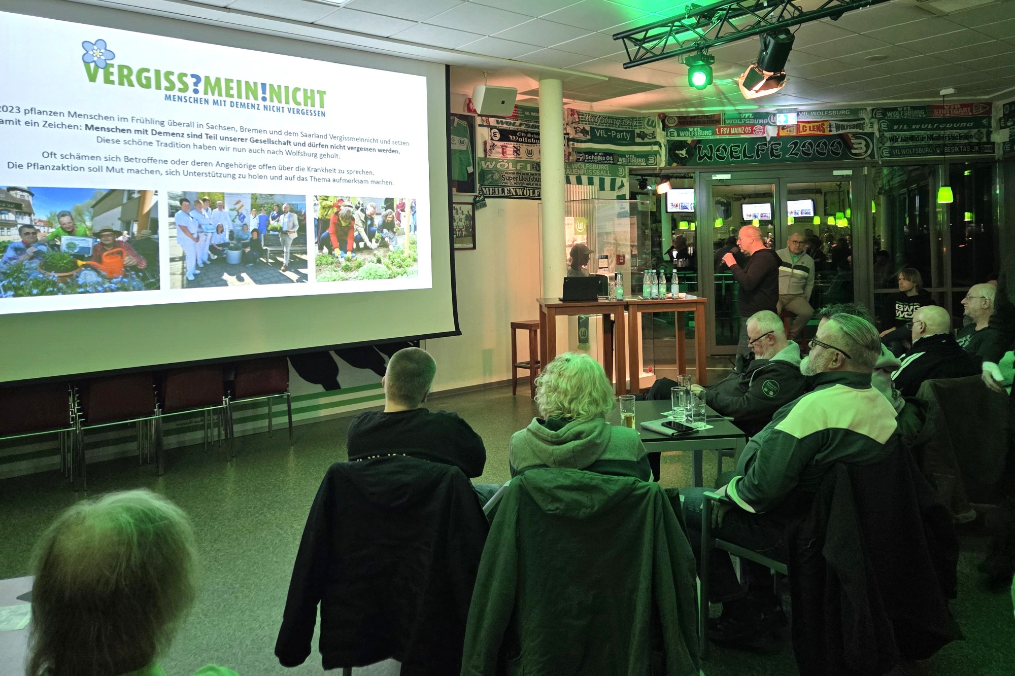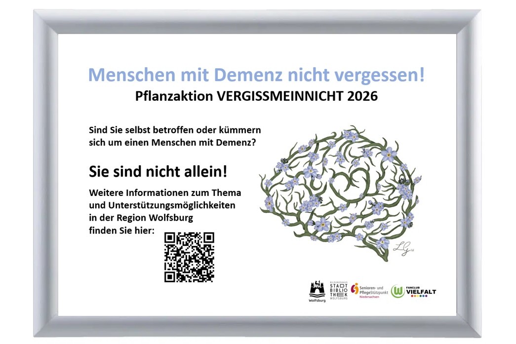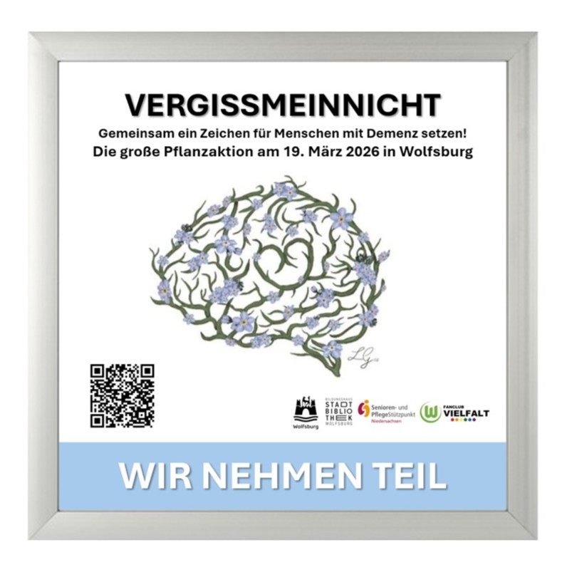 Die Pflanze Vergissmeinnicht steht in vielen Sprachen sinnbildlich für Erinnerung. Zusammen mit dem Senioren- und Pflegestützpunkt Niedersachsen der Stadt Wolfsburg organisieren wir als Fanclub am 19. März 2026 eine Pflanzaktion in Wolfsburg und wollen somit gemeinsam ein Zeichen für Menschen mit Demenz setzen.