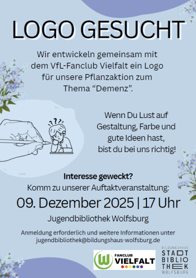 Gemeinsam mit der Jugendbibliothek Wolfsburg starteten wir am 9. Dezember 2025 einen Design-Wettbewerb, um ein einzigartiges Logo für unsere Pflanzaktion zu finden. Zahlreiche Jugendliche ab 12 Jahren folgten dem Aufruf und reichten ihre kreativen Entwürfe ein.